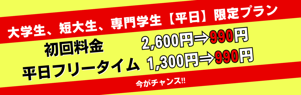 - 学生 ¥2,600 ※大学生・短大生・専門学生は平日990円