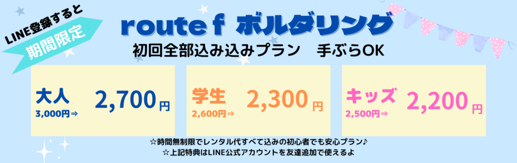 「ボルダリングって難しそう…」「子供を連れて行くのは不安…」そう思っている方もいらっしゃるかもしれません。でもご安心ください。ルートFでは、スタッフが心を込めて丁寧にサポートします。