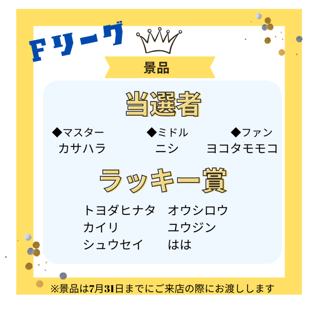 お待たせしました!8月度Fリーグの抽選結果を発表します!